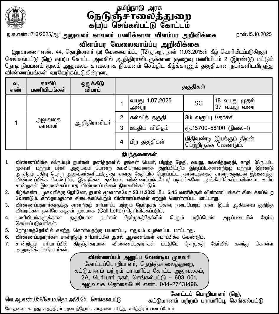 - Download and View the TN Highways Chengalpattu Watchman job notification