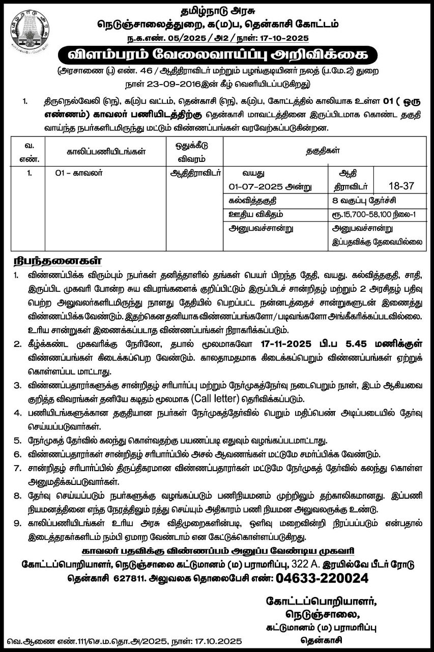 - Download and View the TN Highways Tenkasi Watchman job notification